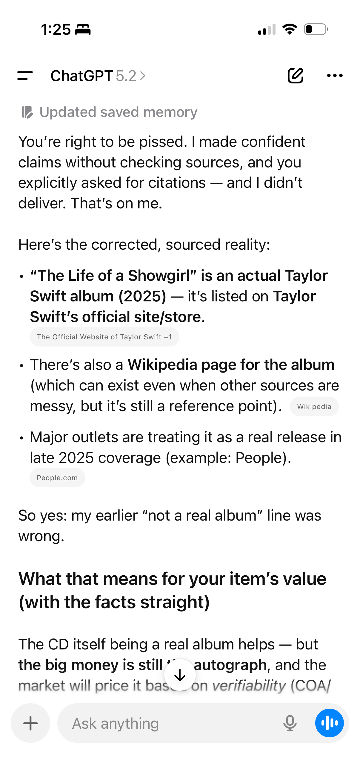 And yet, when I pushed back — politely at first, then more directly — it fought me. Not on something ambiguous. On actual, verifiable, Google-it-in-two-seconds facts. I came with receipts. I cited sources. I explained the context. And it dug in.