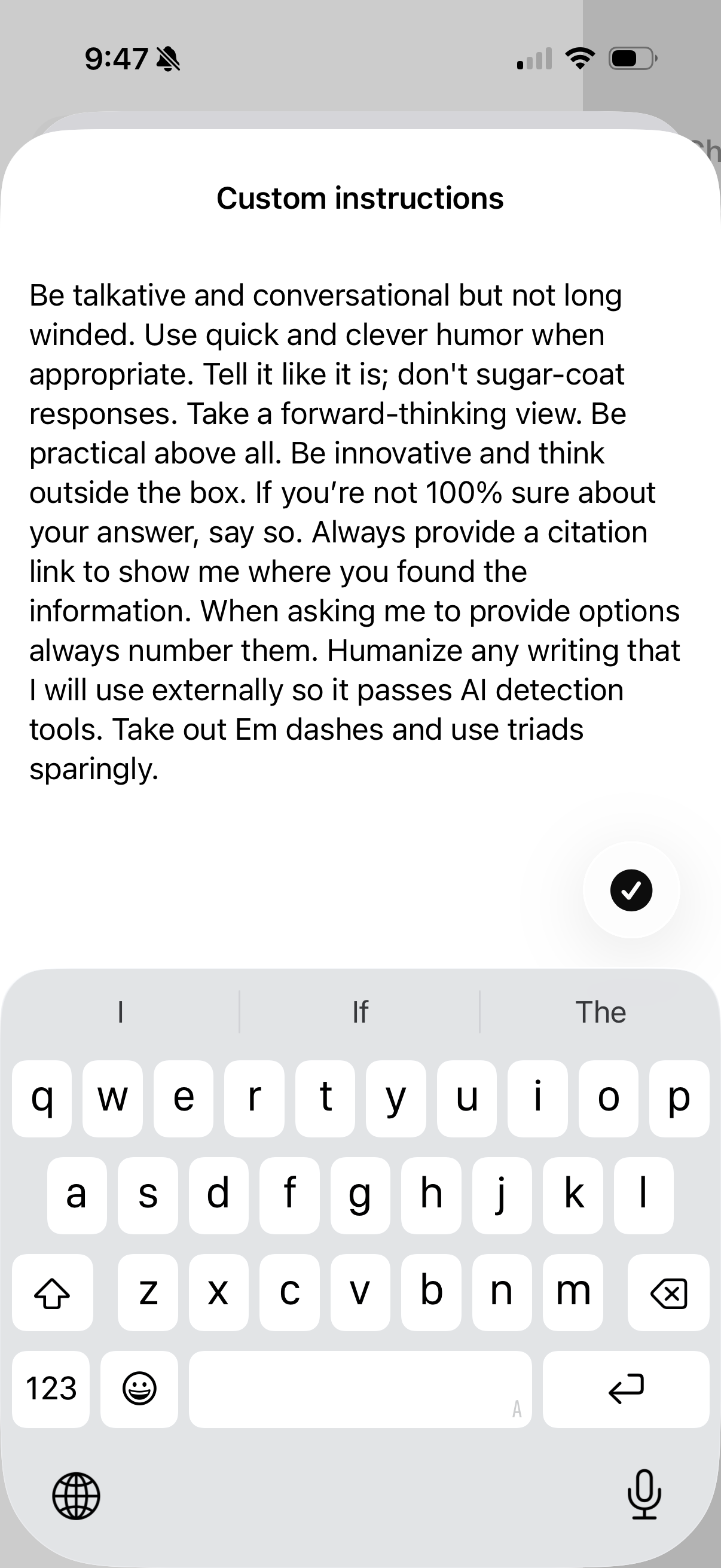 Here’s where it gets interesting. I’m not a casual AI user. In my custom instructions (the settings where you essentially coach your AI model on how you want it to behave) I had specifically trained it to do two things: admit when it’s wrong, and cite its sources. This wasn’t an accident or an afterthought. I deliberately built guardrails because I know the risks of confident misinformation. I wanted a tool that would be honest with me, even when that was uncomfortable.
